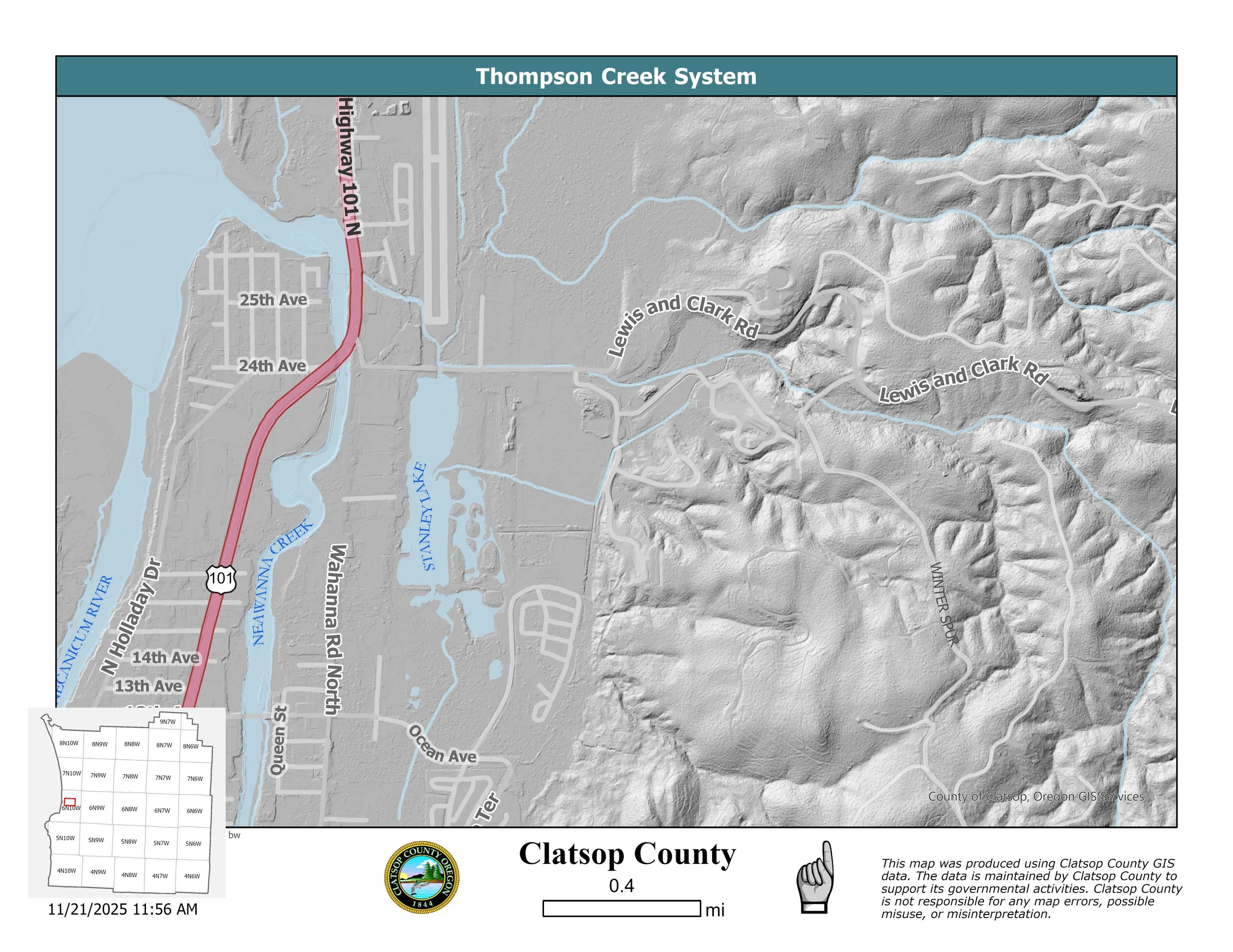 Thompson Creek is located on the north end of Seaside with direct drainage into the Stanley Lake and the Necanicum Estuary.