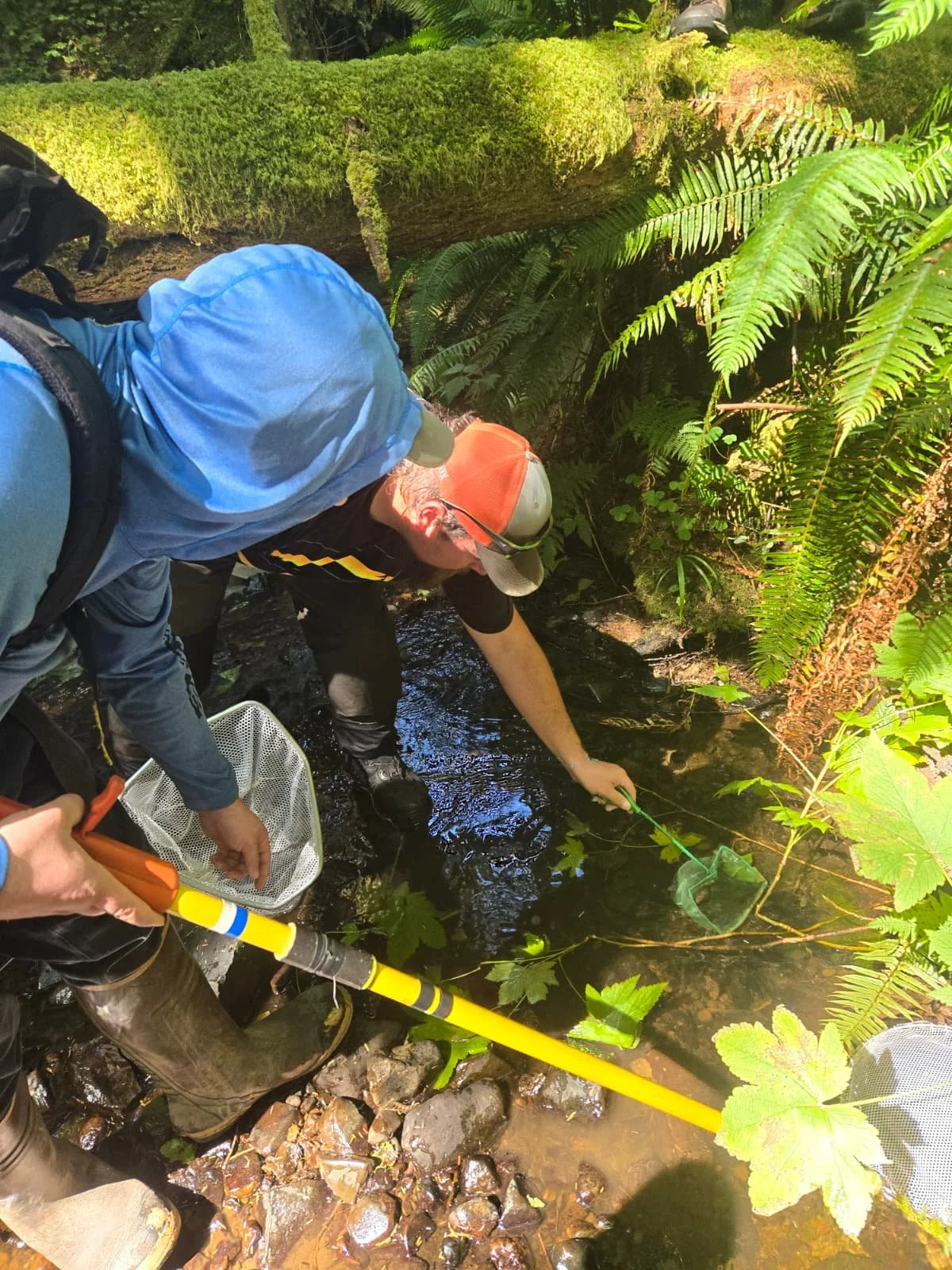 West Fork Environmental field biologist and technician conducting fish salvage at Johnson Creek.